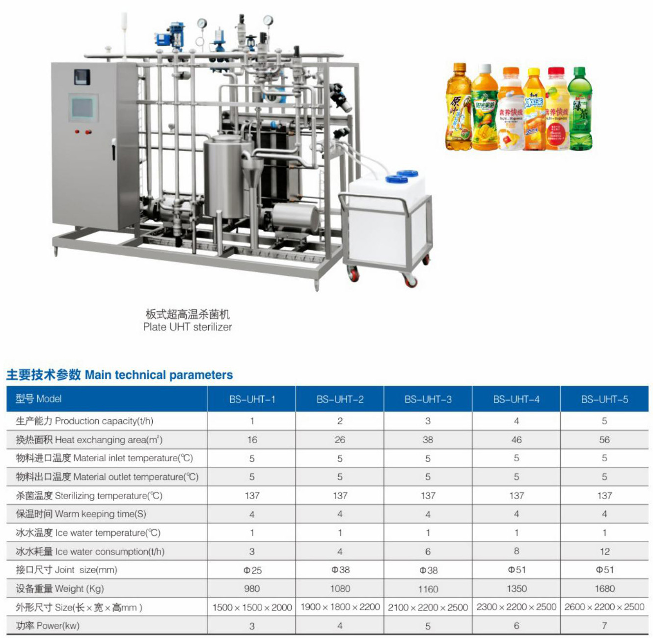 该系统采用超高温处理方法,使液体乳制品、茶饮料、果汁达到严格的灭菌,进而转入无菌包装,其杀菌温度为137度,保温时间为3-5秒,从而尽可能的保持饮料、乳品的原有营养色泽及风味。本设备具有热回收率高,结构紧凑、美观、温度控制等特点;本产品有热灌装,出料温度自控,也可冷灌装。控制方法:半自动、全自动(PLC控制,触摸屏显示)。