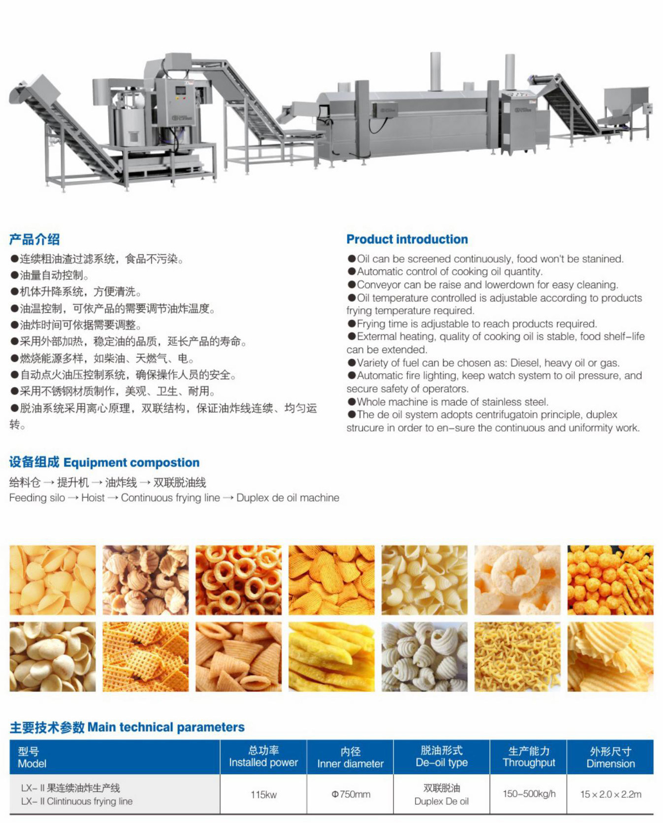 ●脱油系统采用离心原理,双联结构,保证油炸线连续、均匀运