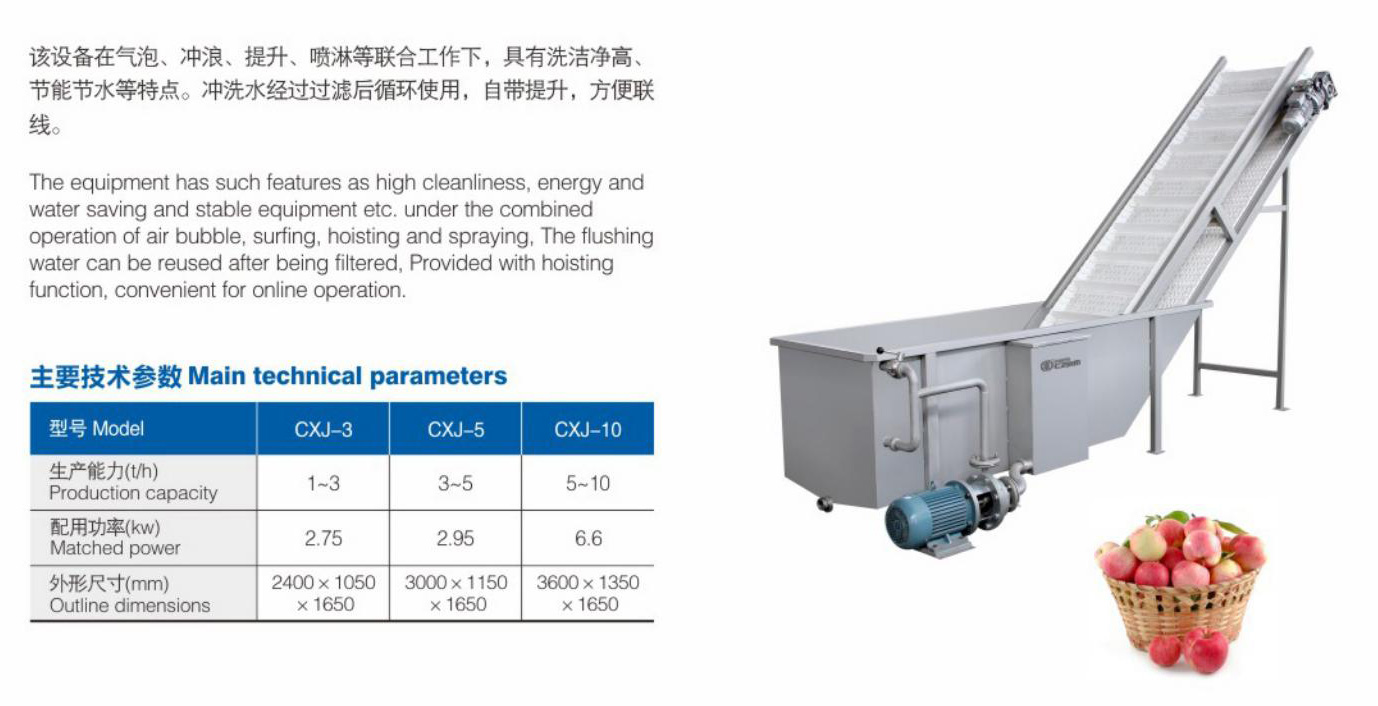 该设备在气泡、冲浪、提升、喷淋等联合工作下,具有洗洁净高节能节水等特点。冲洗水经过过滤后循环使用,自带提升,方便联线。