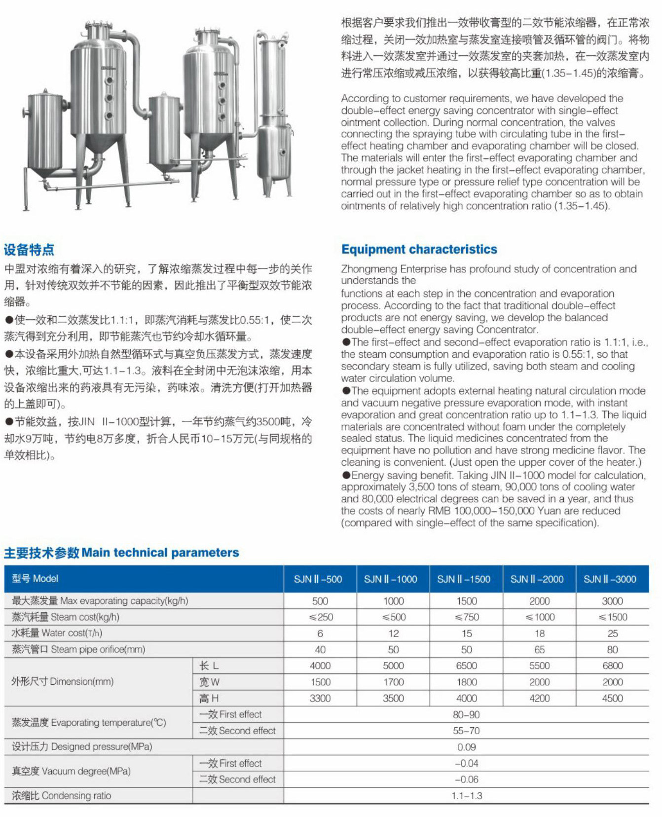 中盟对浓缩有着深入的研究,了解浓缩蒸发过程中每一步的关作用,针对传统双效并不节能的因素,因此推出了平衡型双效节能浓缩器。