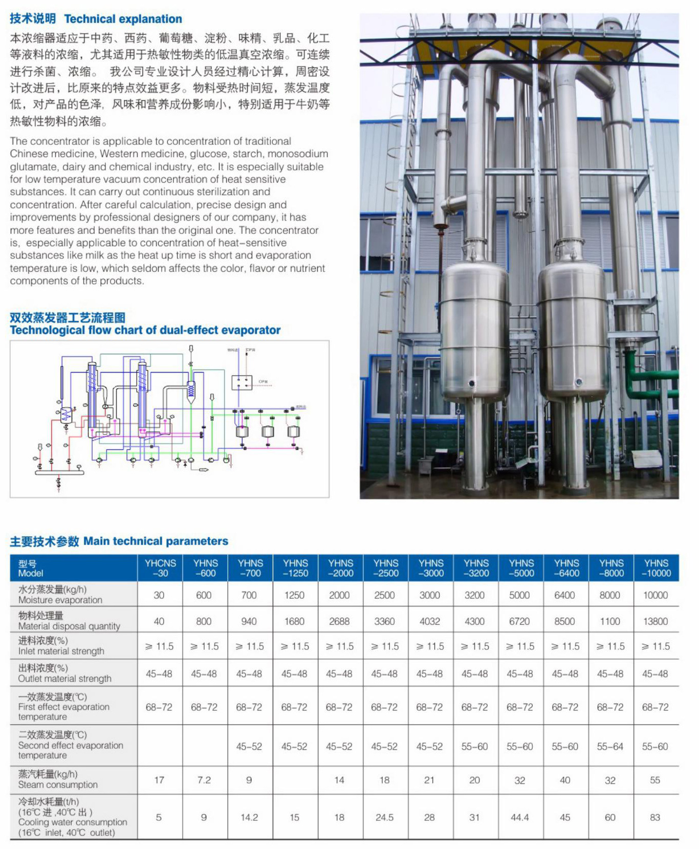 本浓缩器适应于中药、西药、葡萄糖、淀粉、味精、乳品、化工等液料的浓缩,尤其适用于热敏性物类的低温真空浓缩。可连续进行杀菌、浓缩。我公司专业设计人员经过精心计算,周密设计改进后,比原来的特点效益更多。物料受热时间短,蒸发温度低,对产品的色泽,风味和营养成份影响小,特别适用于牛奶等热敏性物料的浓缩。