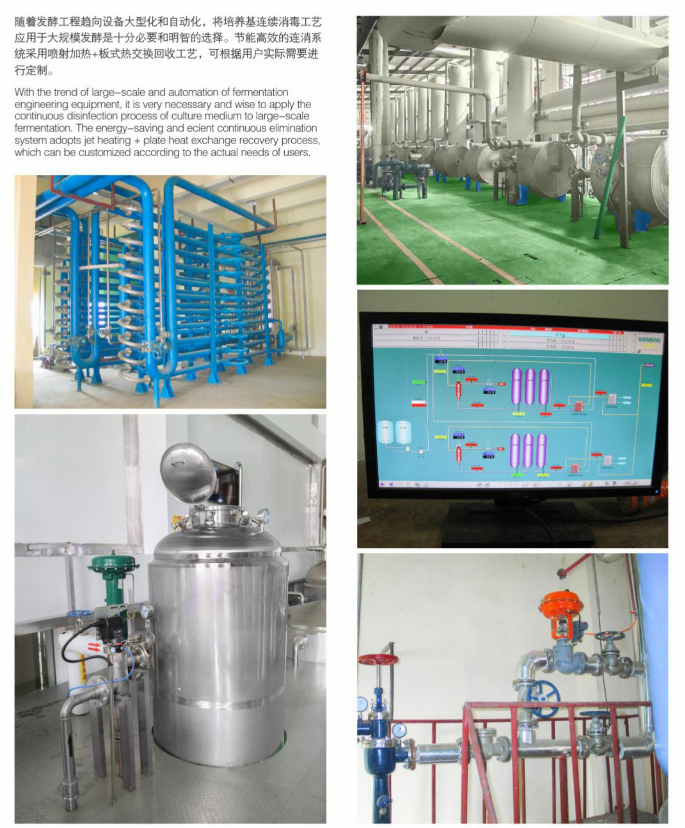 随着发酵工程趋向设备大型化和自动化,将培养基连续消毒工艺应用于大规模发酵是十分必要和明智的选择。节能高效的连消系统采用喷射加热+板式热交换回收工艺,可根据用户实际需要进行定制。