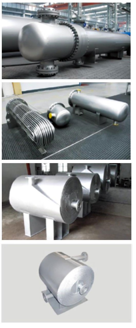 列管式换热器是目前化工及酒精生产上应用最广的一种换热器。它主要由壳体、管板、换热管、封头、折流挡板等组成。所需材质,可分别采用普通碳钢、紫铜、或不锈钢制作。在进行换热时,一种流体由封头的连结管处进入,在管流动,从封头另一 端的出口管流出,这称之管程;另一种流体由壳体的接管进入,从壳体上的另一接管处流出,这称为壳程。